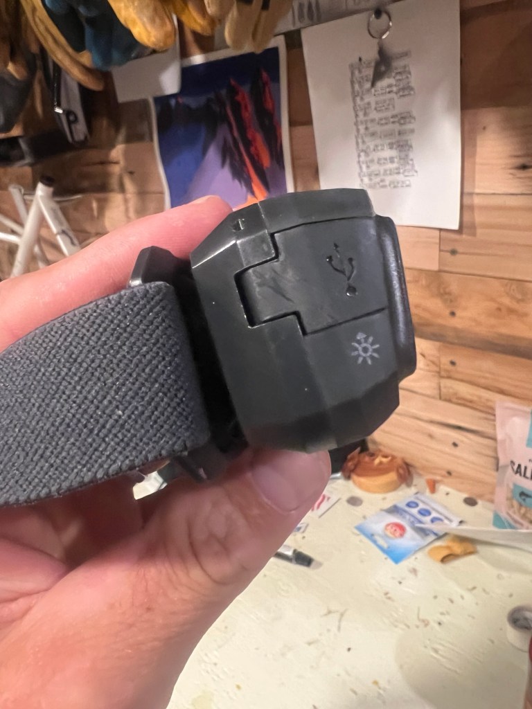The most important quality, besides brightness in this headlamp, is the recharging capability. I HATE throwing away a bunch of bullshit AAA batteries all season long as my headlamp slowly dies. Like a frog in water, you didn’t realize you were groping around in near darkness until you put a new set of batteries in, only to blind everyone around you. The old batteries get lost or mixed up with good batteries in your drybag, then go in the landfill eventually. Nobody is ever on top of it enough to collect ALL of their batteries and take them to the special battery recycling place, except for that one annoying friend that makes you feel bad about yourself for not being a better human….long story short….I like the easy-to-find charging chord that lets me plug this sucker in before I leave the house, or use a small power bank while out on long trips, or simply plug into the truck on my way to trailhead. You can blind all your friends or coworkers all season long without needing to buy batteries. It’s like having a fresh set of batteries anytime you want w/o the guilt!
